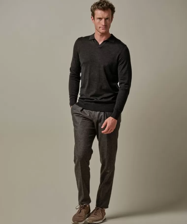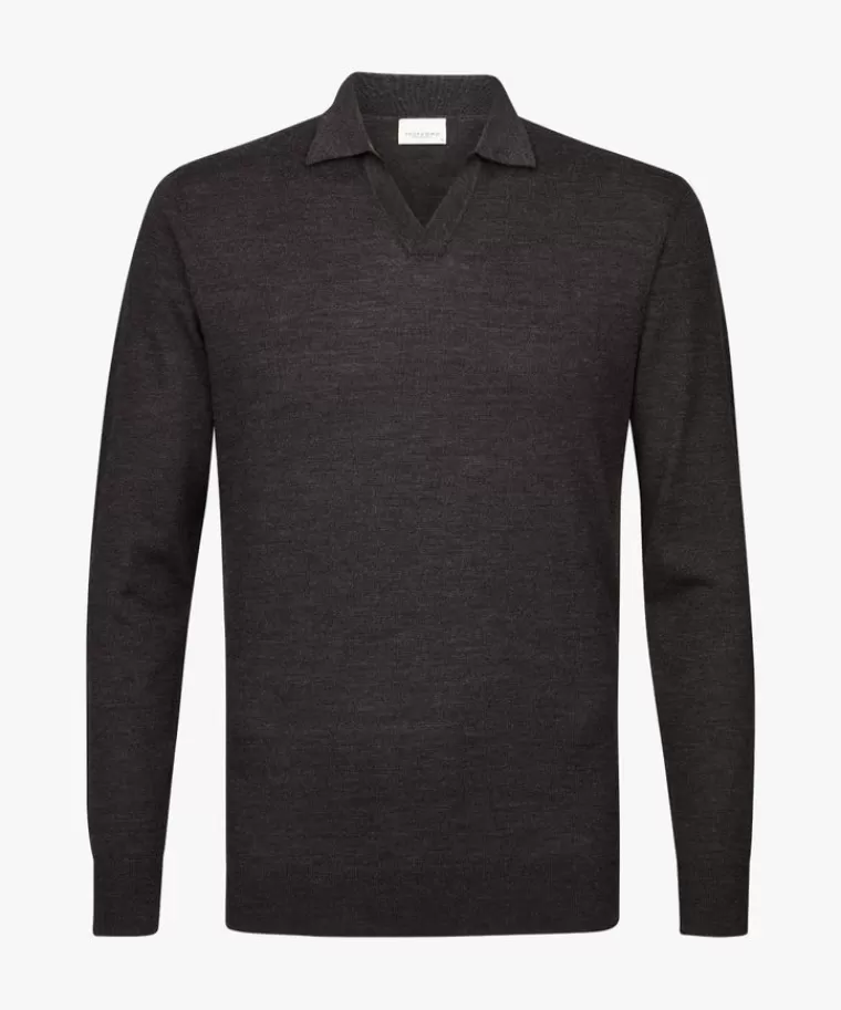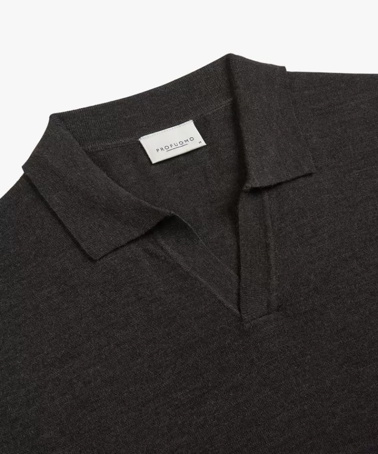 Profuomo Donker bruine merino open kraag polo DonkerBruin Sale