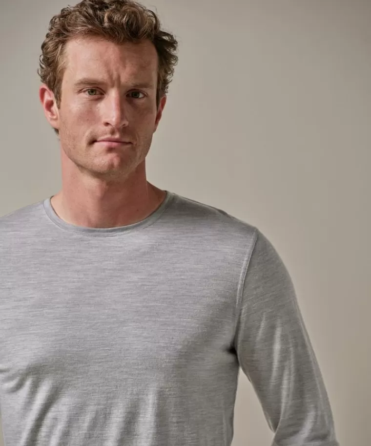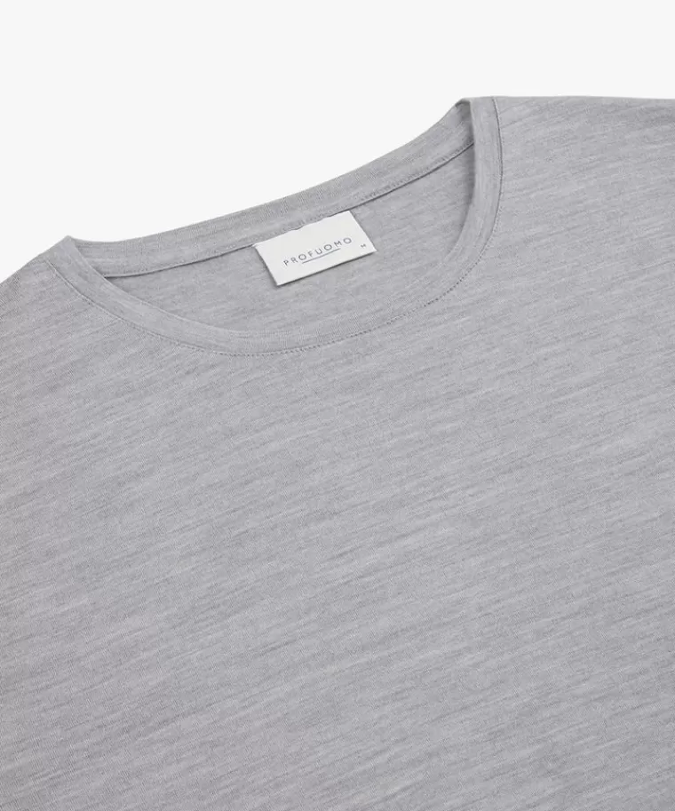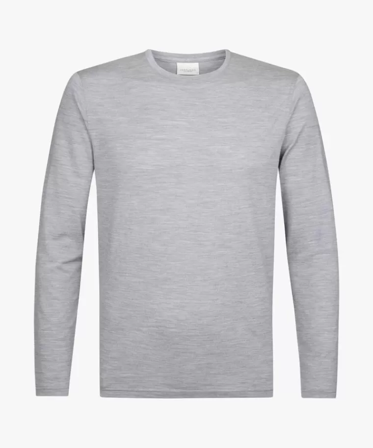Profuomo Grijs merino t-shirt longsleeve Lichtgrijs Discount