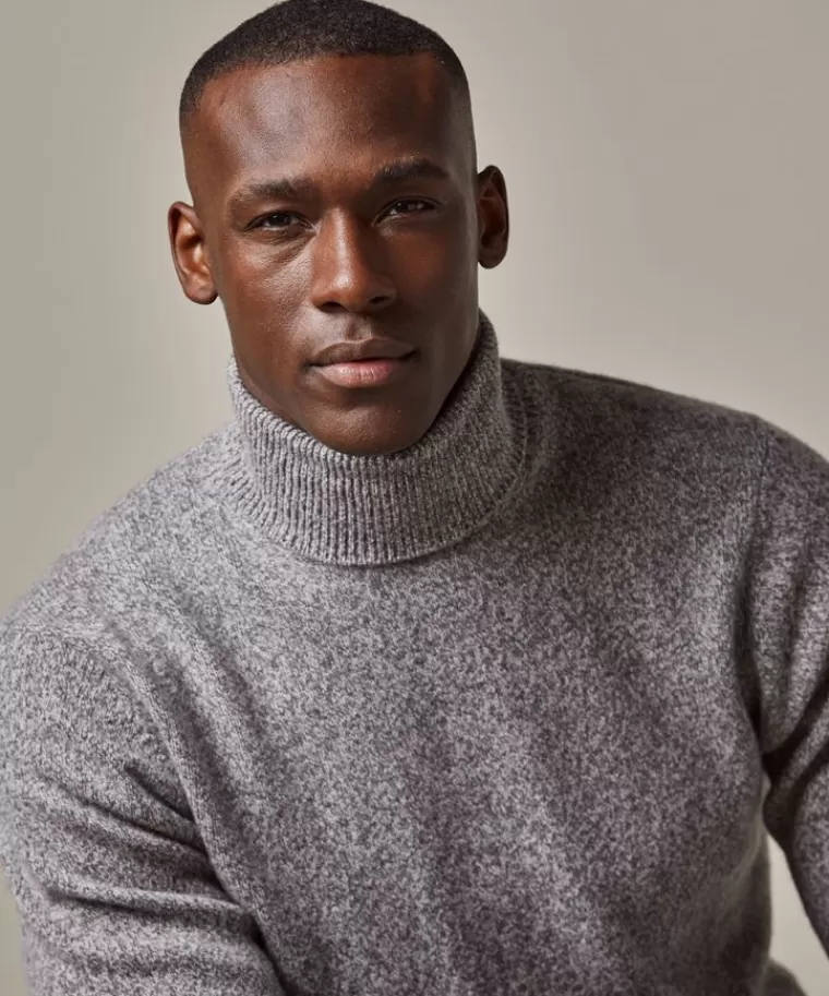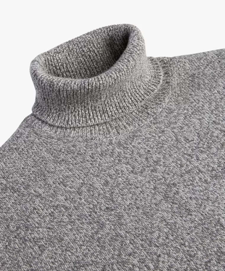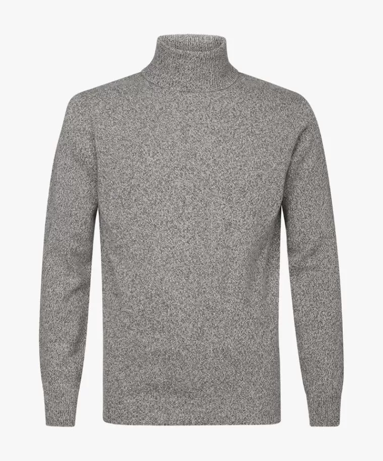 Deze grijze coltrui is gebreid van een hoogwaardig tweekleurig garen. Door de wol blend blijf je ook nog eens heerlijk warm.