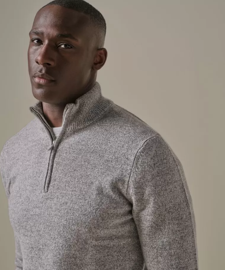 Deze grijze wollen pullover met halve rits wordt je nieuwe favoriet dit seizoen. De half zip is gebreid van een hoogwaardig tweekleurig garen. Door de wol blend blijf je ook nog eens heerlijk warm.