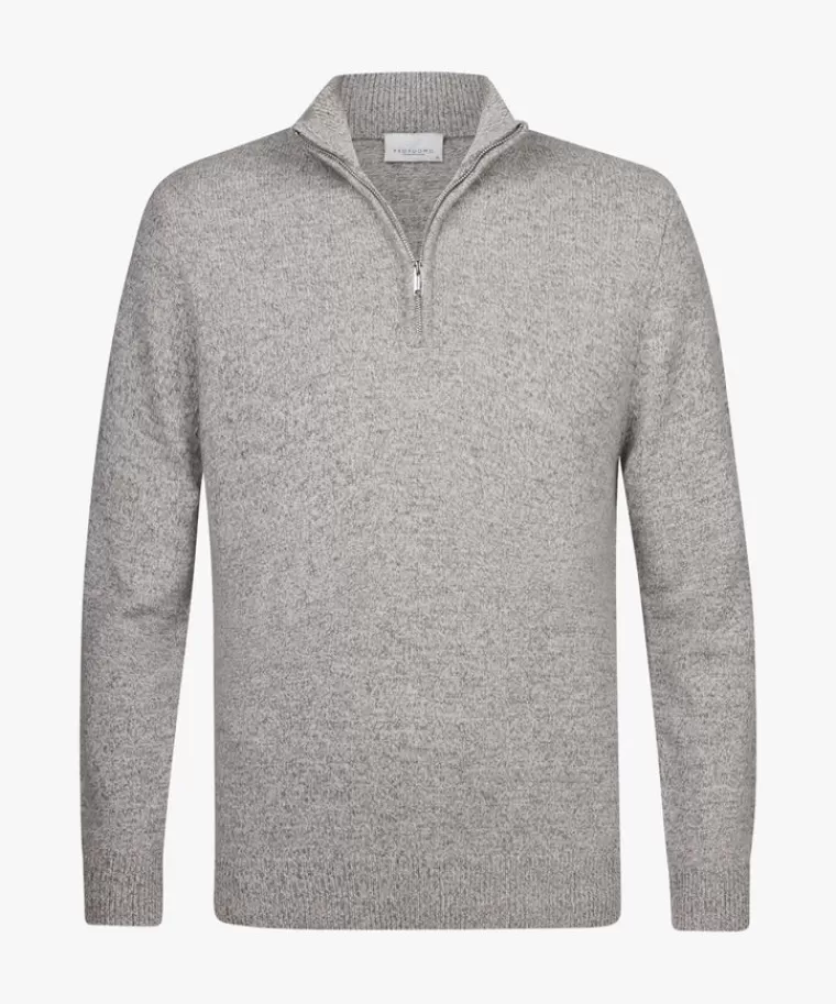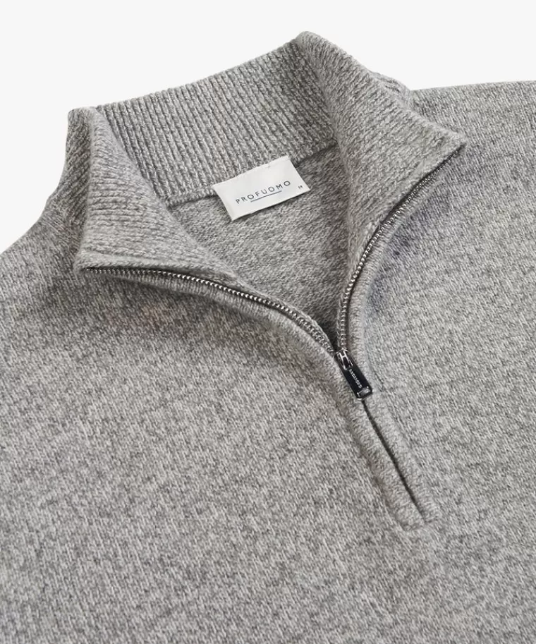 Profuomo Grijze wollen half zip Lichtgrijs New