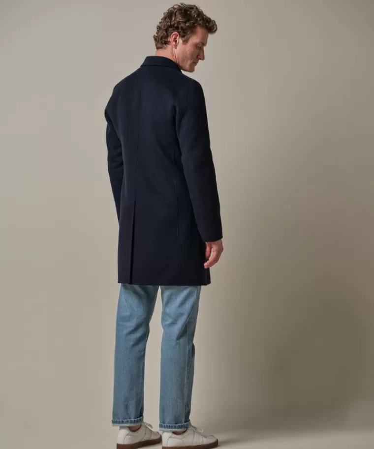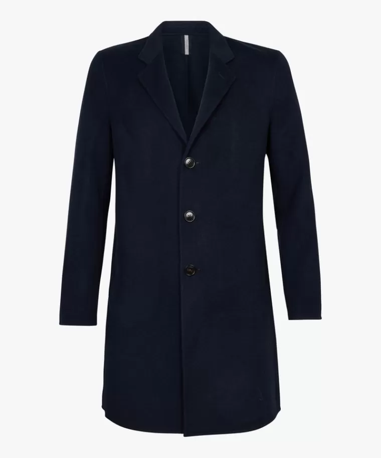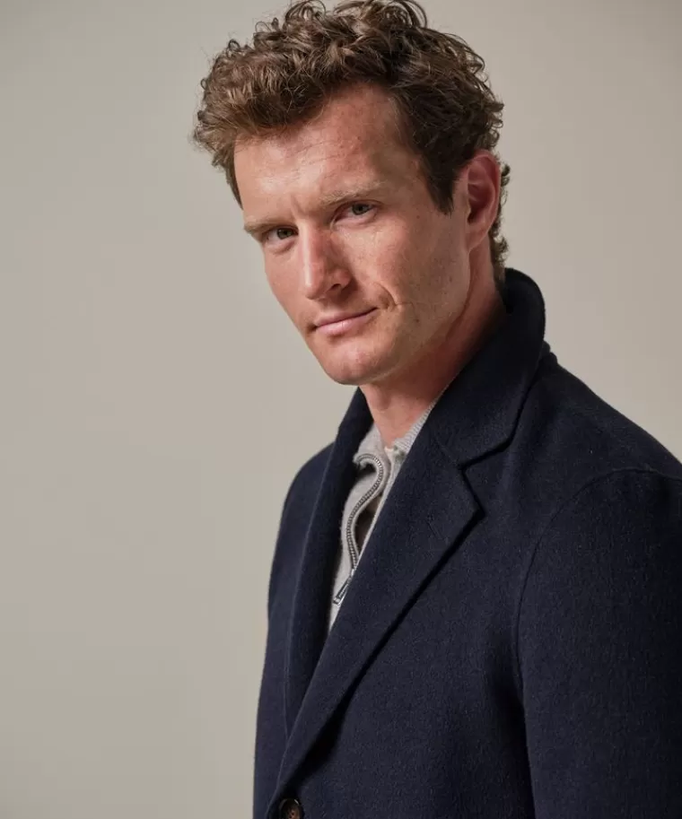 A classic re-invented. Deze navy knitted jas is perfect voor de overgang van herfst naar winter. Door de wol kun je je jas echter ook heel de winter door blijven dragen. Zowel formeel als casual te dragen. Echte hoornen knopen voor extra luxe.