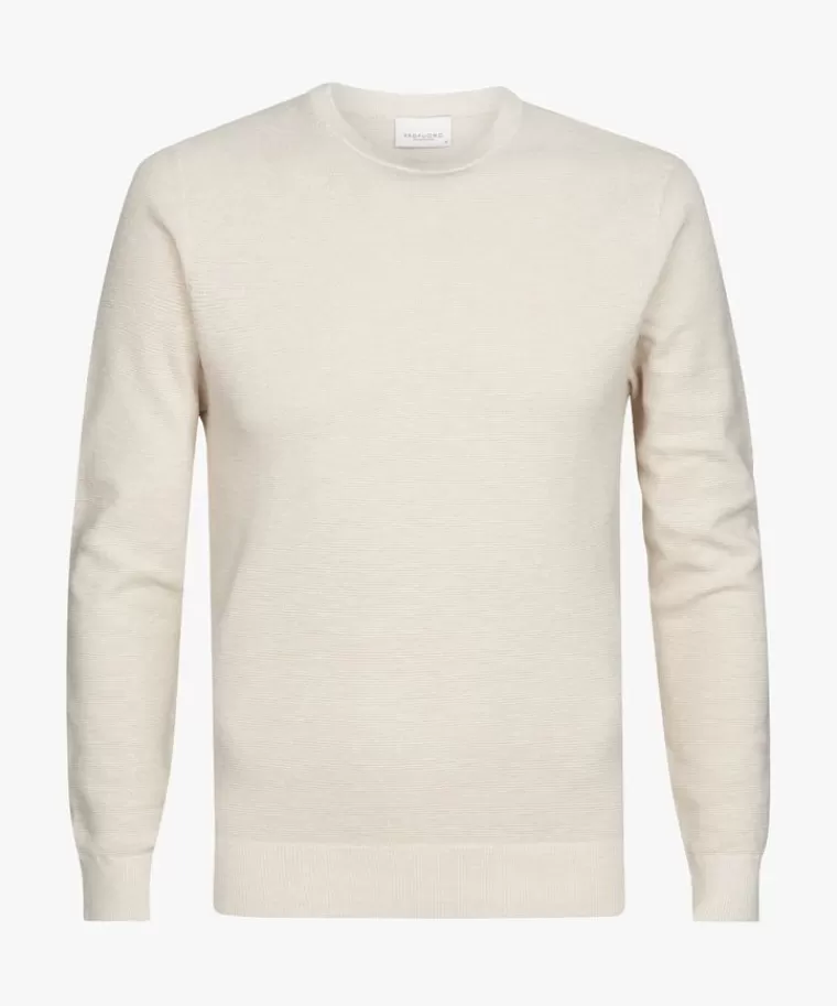 Een mooie basic. Deze off white crewneck trui heeft een mooie structuur en mélange effect. Biologisch 100% katoen.