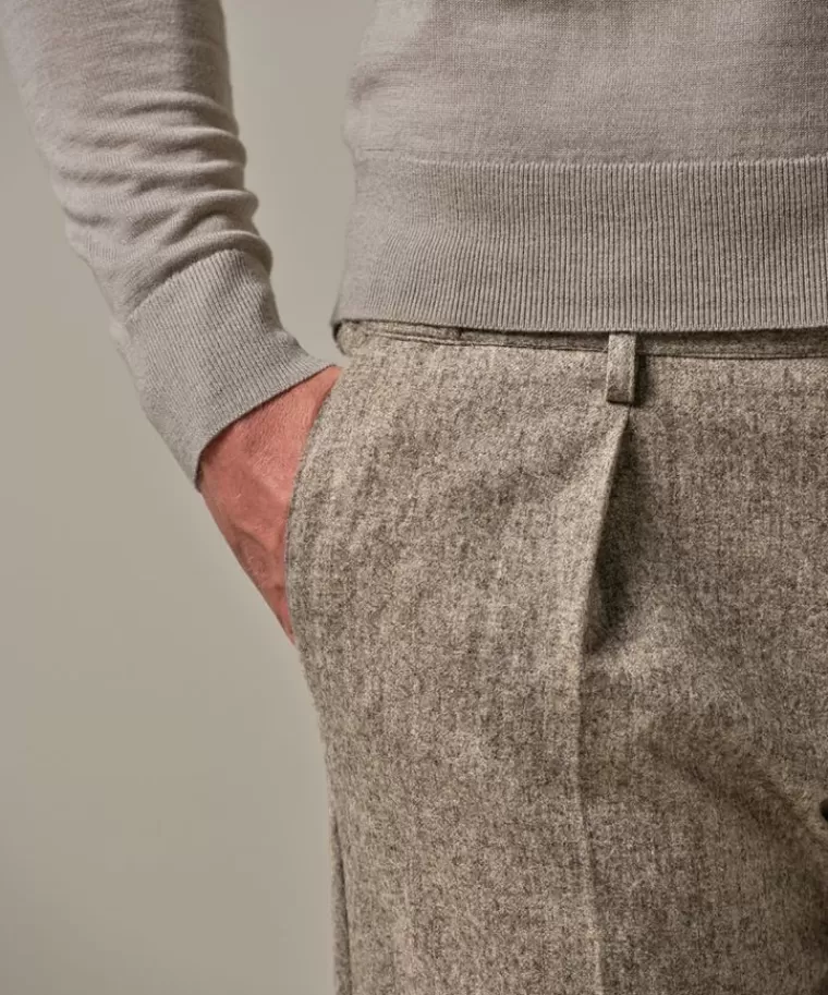 Deze beige flanel relaxed fit is een musthave deze winter. Deze flanel relaxed fit broek is zowel geschikt voor een meer formele of meer smart casual look. Gemaakt van een Europese wol-blend flanel.